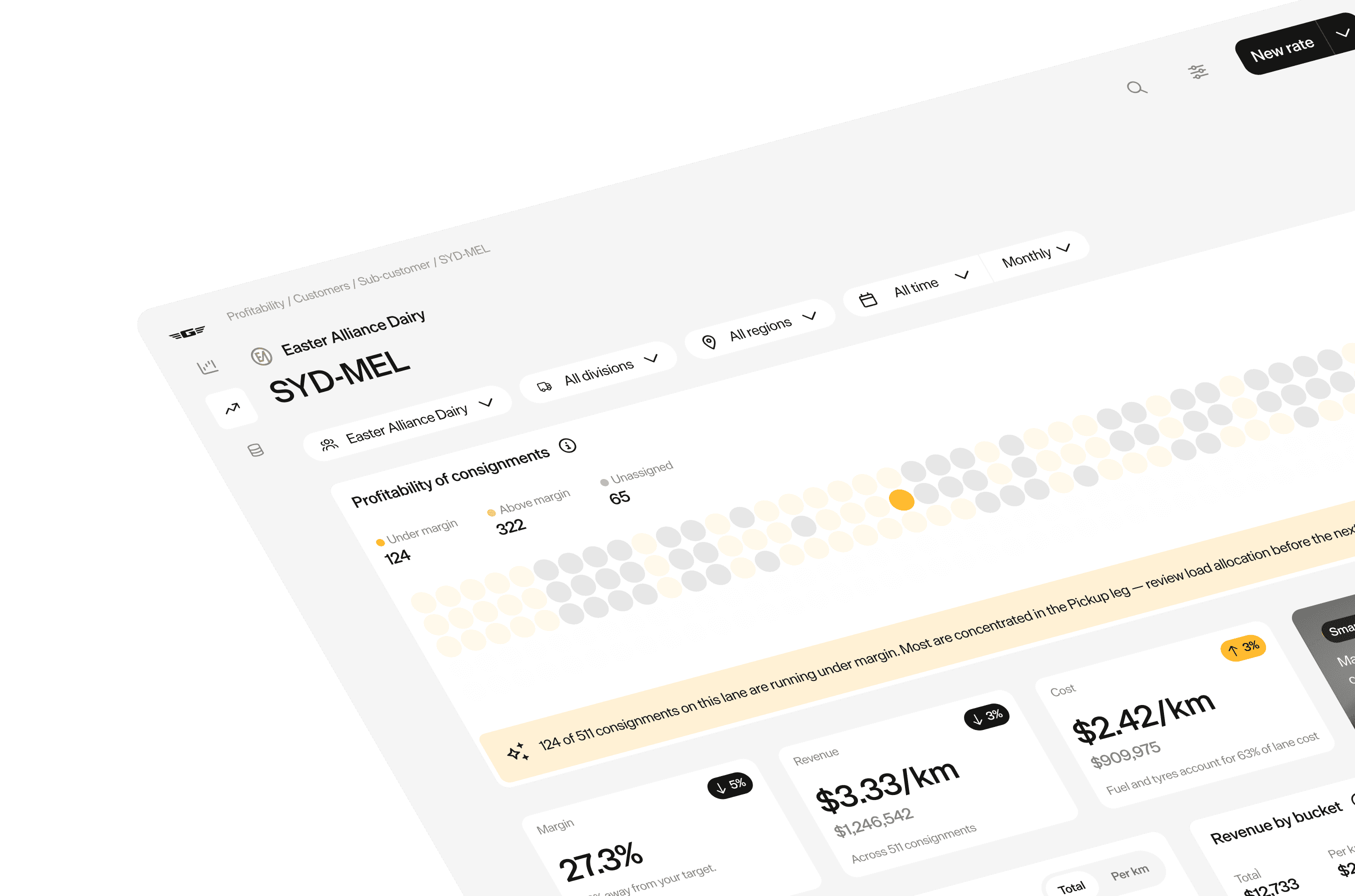 See the true cost and margin of every individual job by lane, customer, and consignment.
