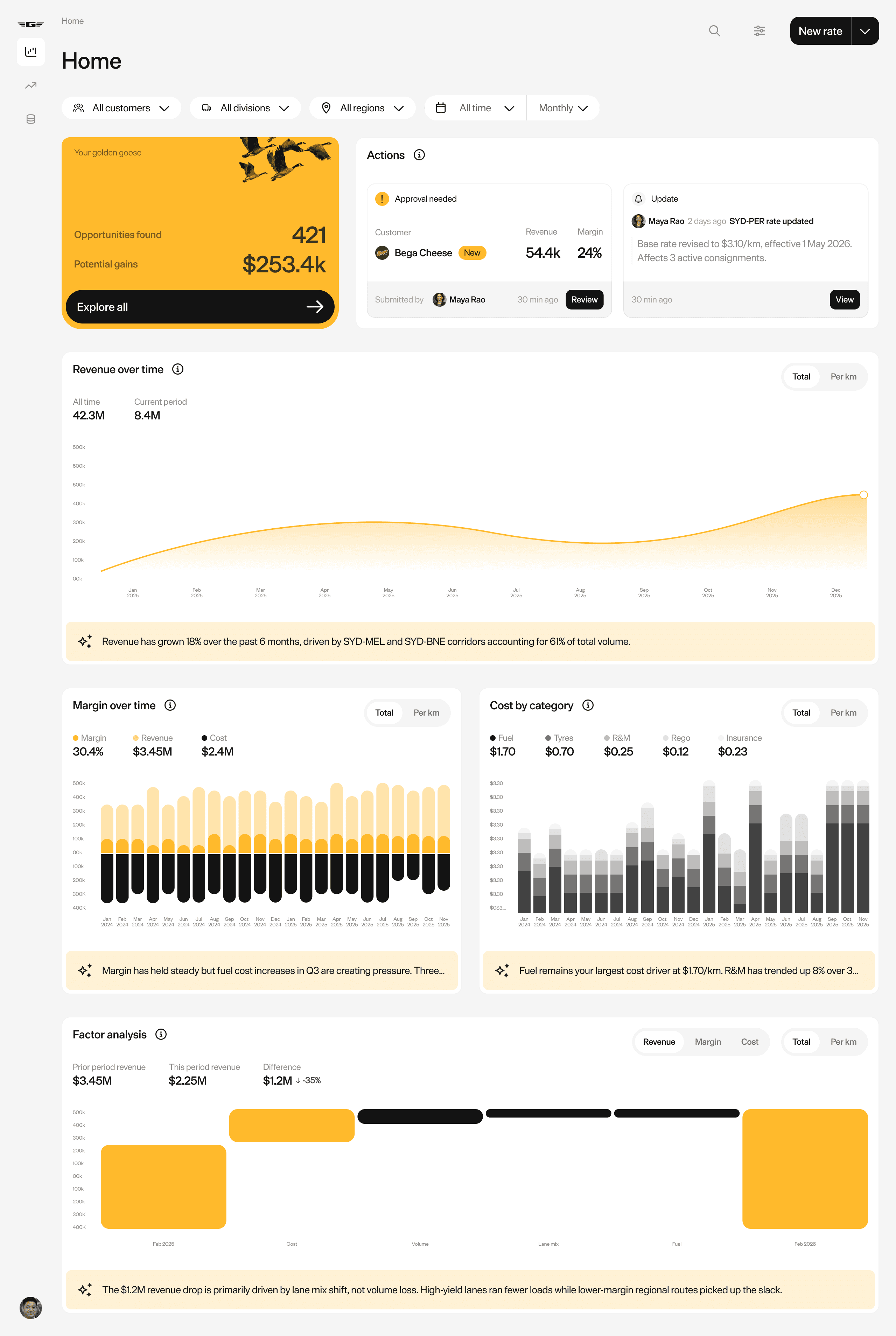 "We move thousands of loads a week and our costing is always 30 days behind. By the time we see a margin leak, we've already bled for a month."